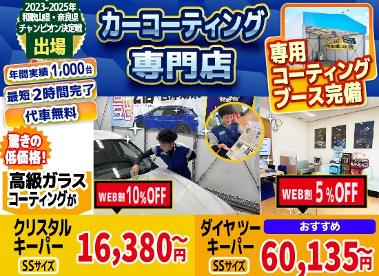 これは大和郡山市・奈良市・天理市・生駒市エリアの中でもトップクラスのカーコーティング実績を誇ります!